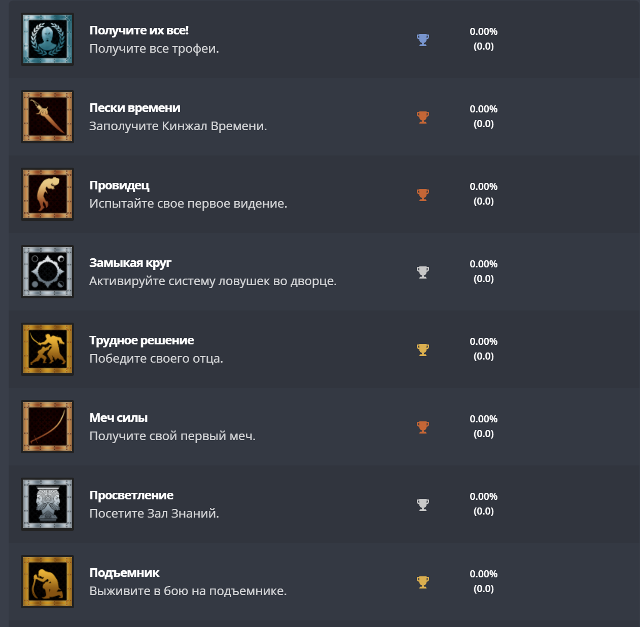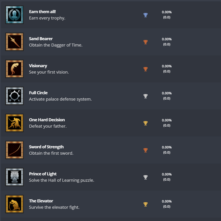 На exophase опубликовали список достижений (трофеев) Prince of Persia The Sands of Time Remake для PlatStation 4.