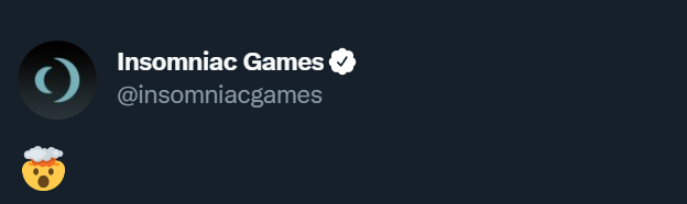 Без лишних слов, Insomniac Games просто оставила характерный смайлик, передающий эмоции разработчиков от увиденного.