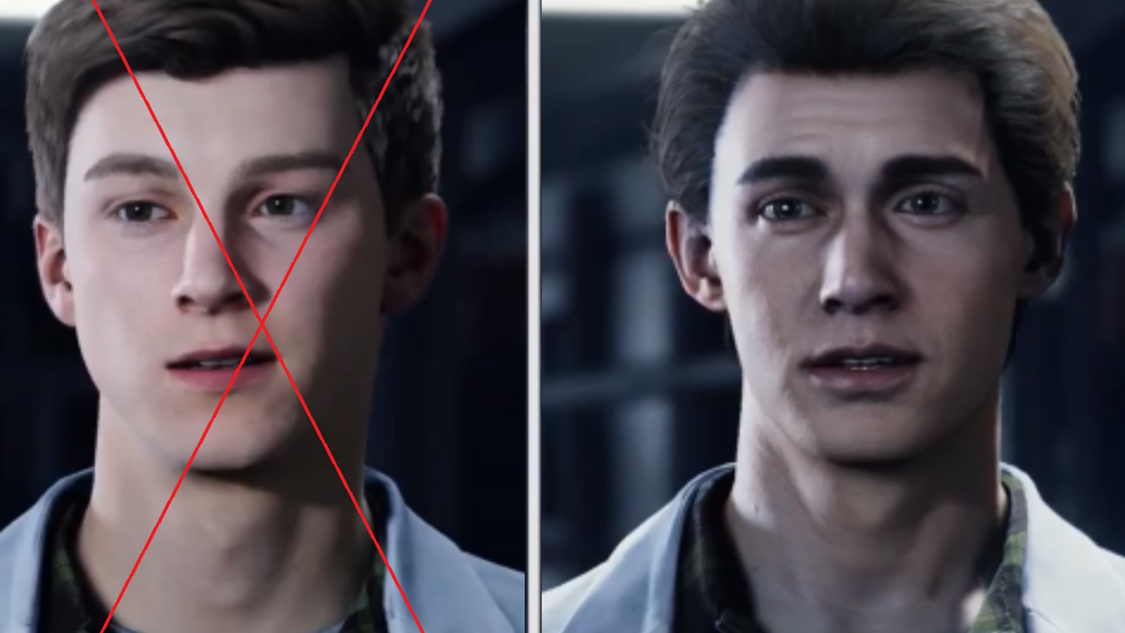 Сравнение лиц Питера Паркера в Spider-Man, разработанной Insomniac Games: