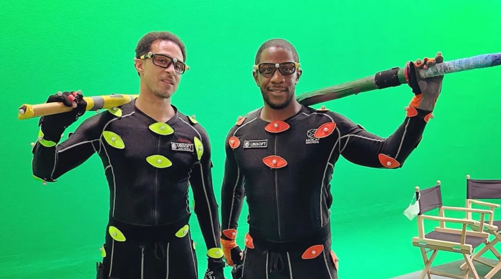 На следующем фото можно так появляется Эдвин Гэффни (Edwin Gaffney), а в руке у актёра предмет, который подозрительно напоминает меч. Вновь лого Ubisoft на костюме.
