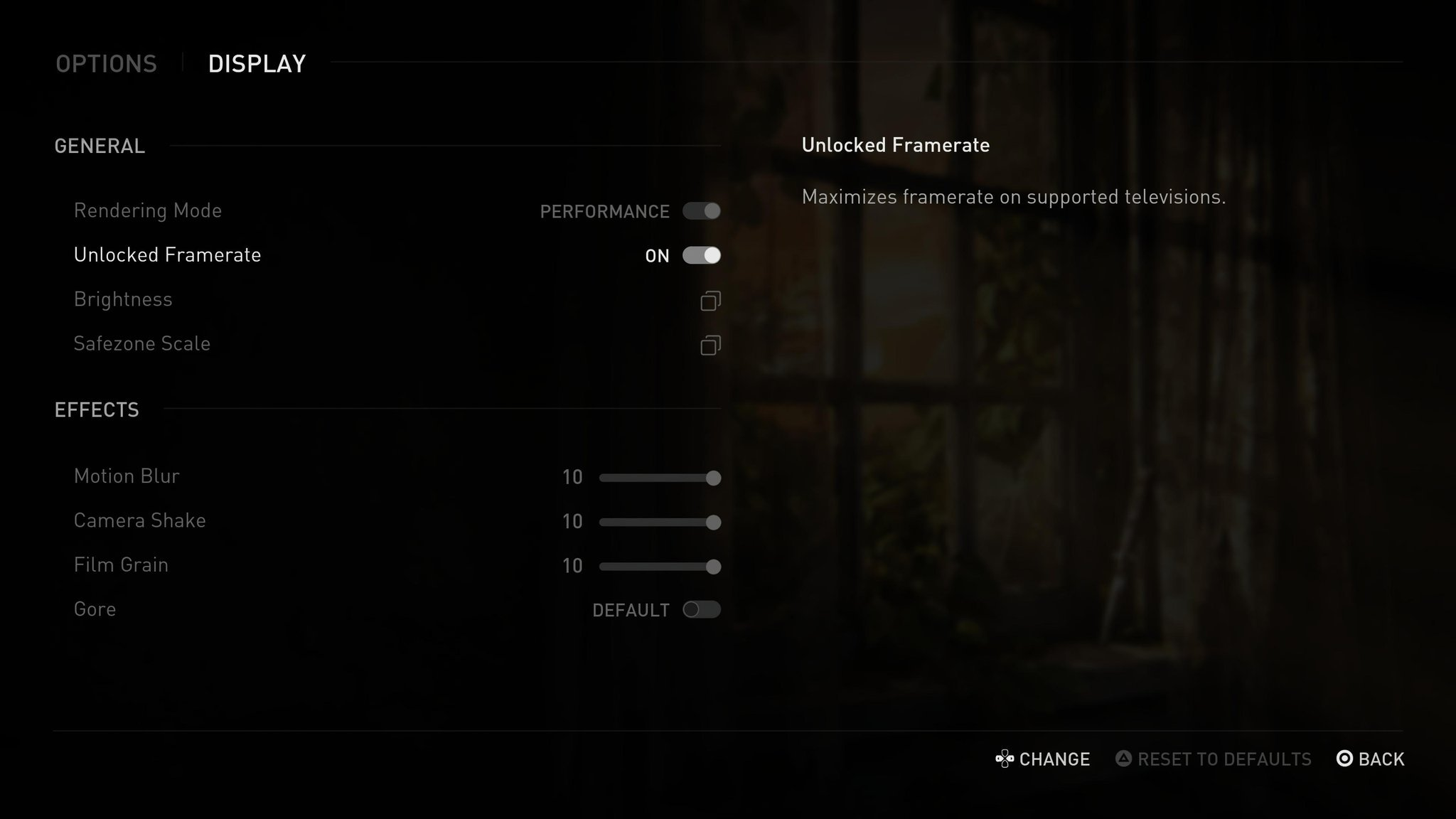 По имеющейся информации, разработчики предложат в The Last of Us опцию разблокировки частоты кадров. Как утверждается, максимальная частота кадров составит 120 FPS. По мнению некоторых, на ПК 120 FPS уже давно стандарт.