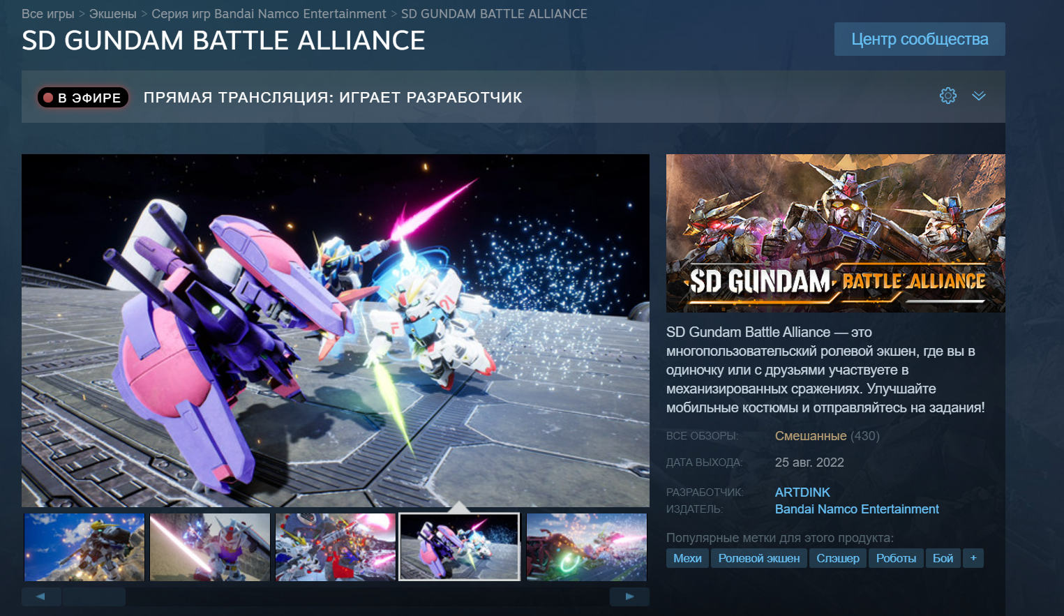 Издателем игры указана Bandai Namco Entertainment Europe. При этом в России доступна вышедшая 25 августа SD GUNDAM BATTLE ALLIANCE, издаваемая Bandai Namco Entertainment.