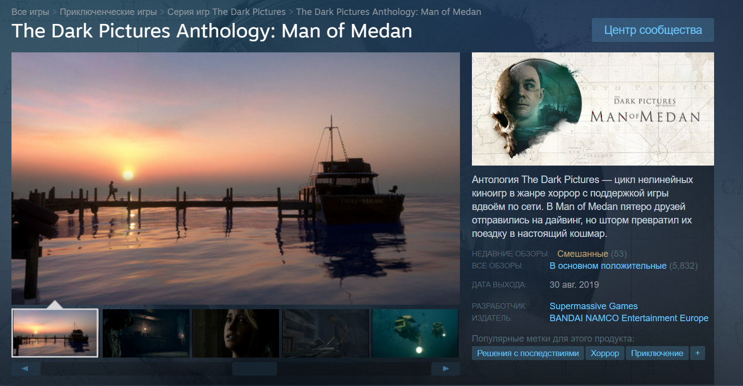 На момент публикации другие игры The Dark Pictures Anthology доступны в российском Steam. У них издателем указана BANDAI NAMCO Entertainment Europe (первые 2 слова «капсом»).