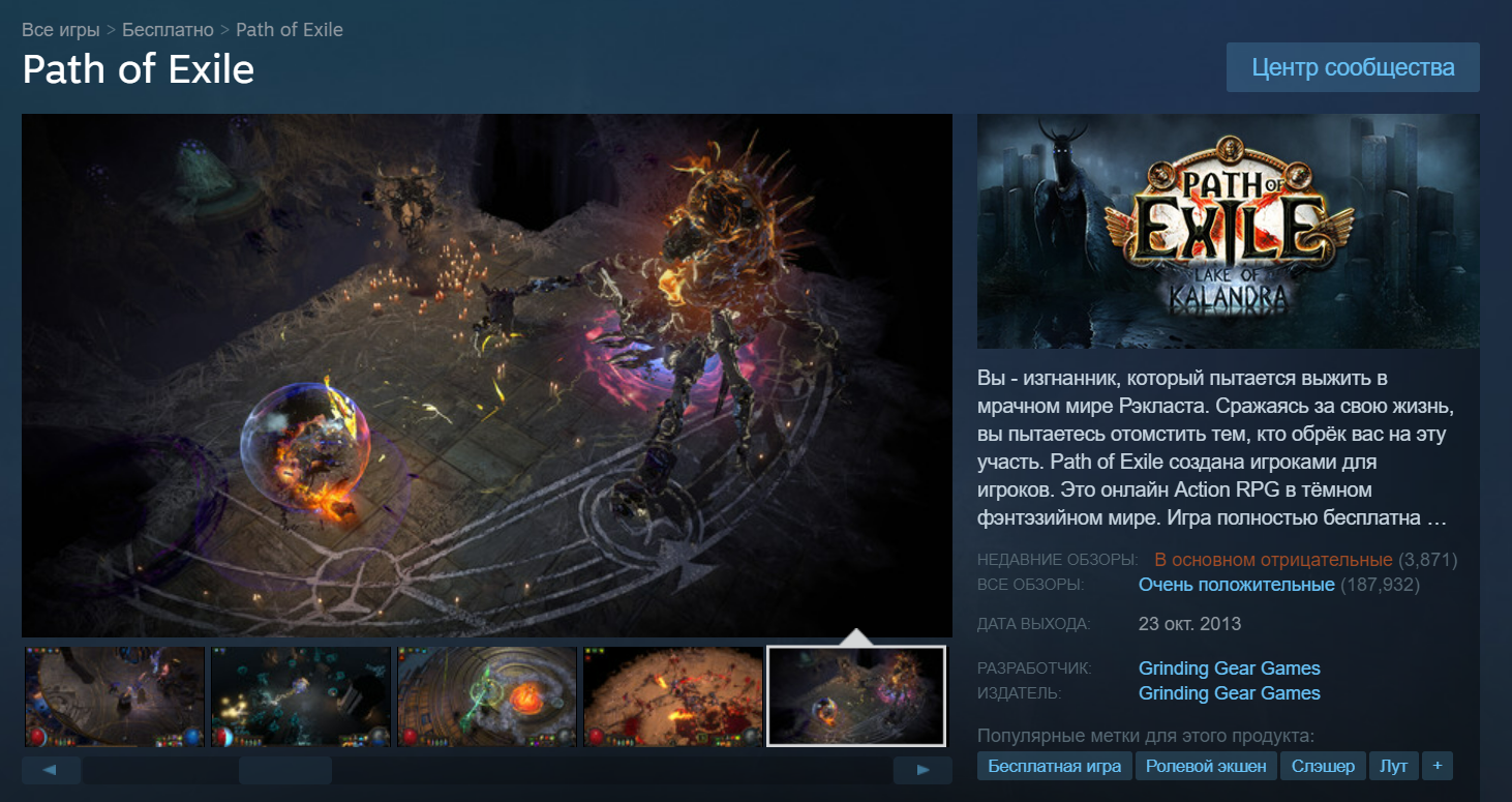 За последние 30 дней Path of Exile в Steam получила более 60% отрицательных отзывов.