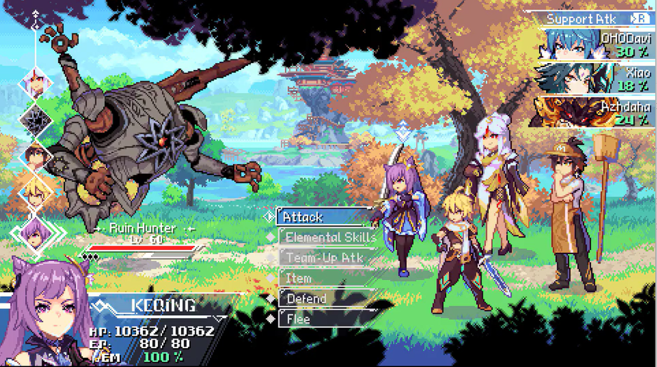 Энтузиаст под ником OhoDavi представил Genshin Impact в формате JRPG. Знакомых героев перенесли в прошлое, поместили их в пиксельную игру.