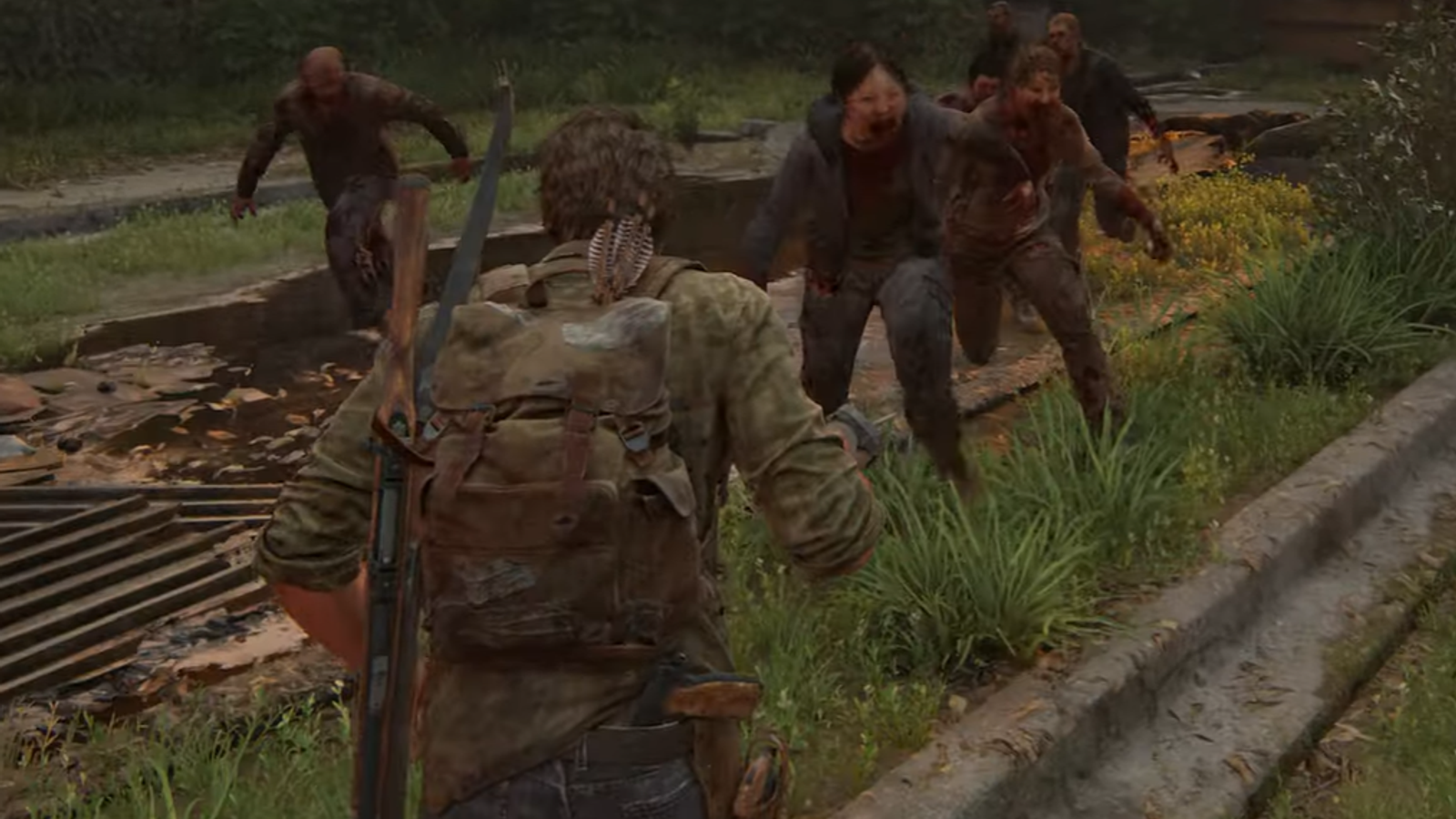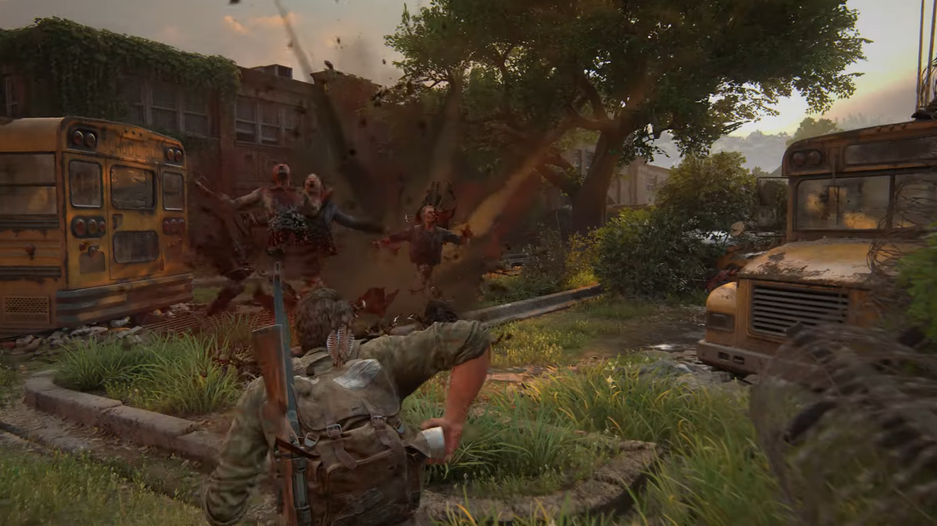 Компания из Джоэла, Элли и Билла сражается с заражёнными. В какой-то момент Джоэл использует взрывчатку и противников эффектно разрывает на части.
