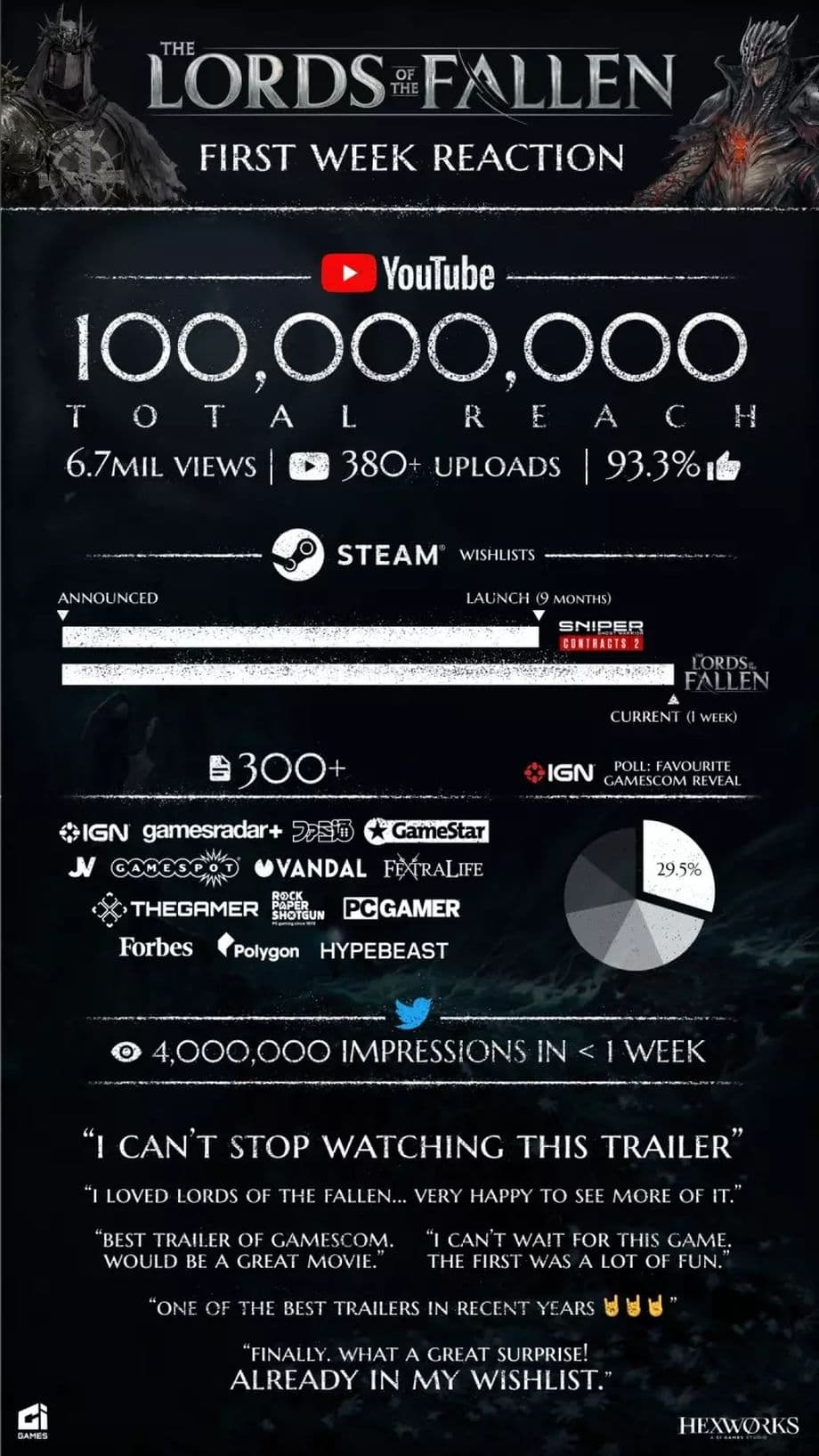 «Я очень доволен самым сильным запуском рекламной кампании в истории CI Games, включая великолепный прием трейлера "Лордов". Сама игра очень понравилась нашим нынешним и потенциальным партнерам, которые увидели её на закрытых показах».