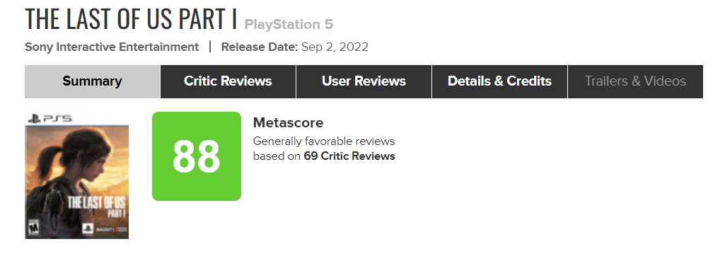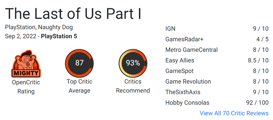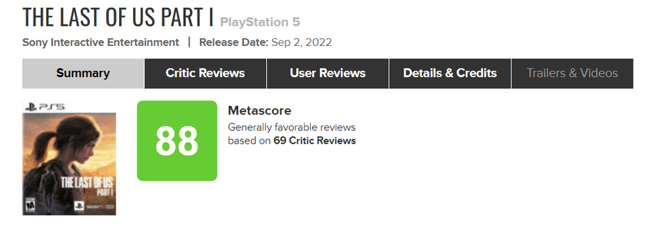 Обновлённую игру Naughty Dog оценили достаточно высоко, но итоговый балл пока так и не преодолел отметку в 90 баллов.