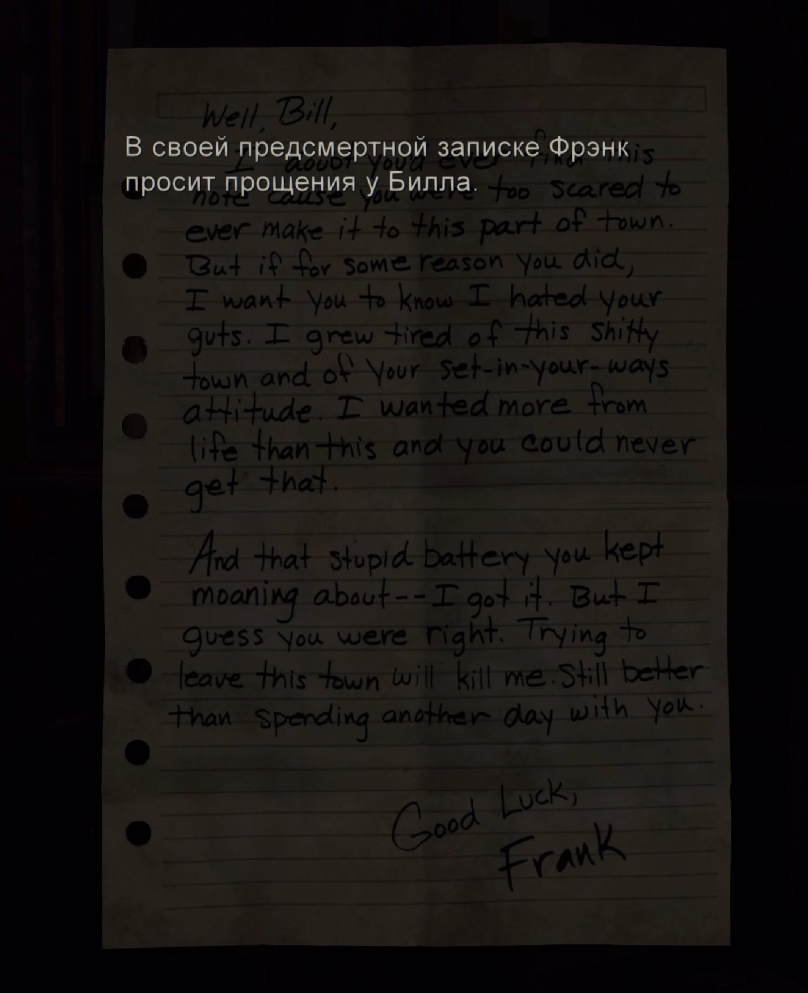 Как утверждается, это записка Фрэнка в версии The Last of Us для PS3: