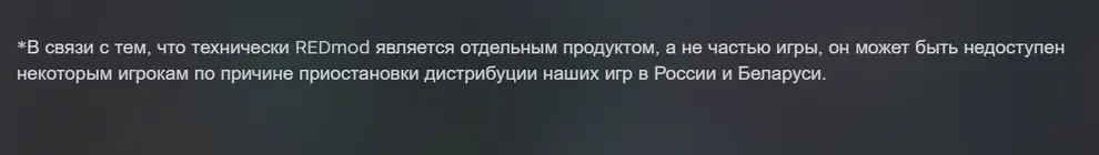 Страницу DLC Cyberpunk 2077 REDmod заблокировали в российском Steam.