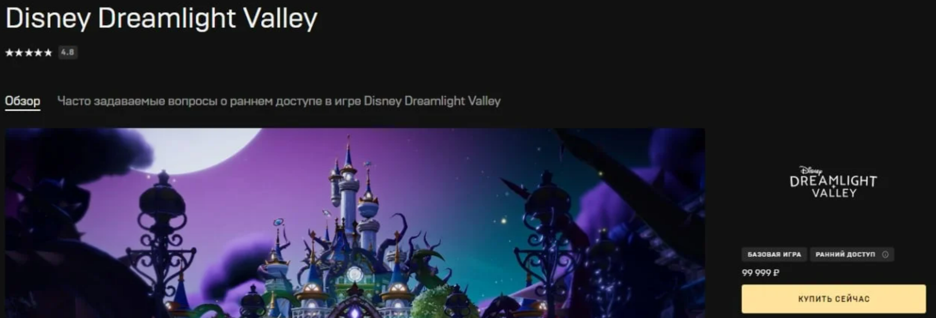 За Disney Dreamlight Valley в Epic Games Store просят 99999 рублей (почти 100 тысяч рублей). Игру в Росси не купить.