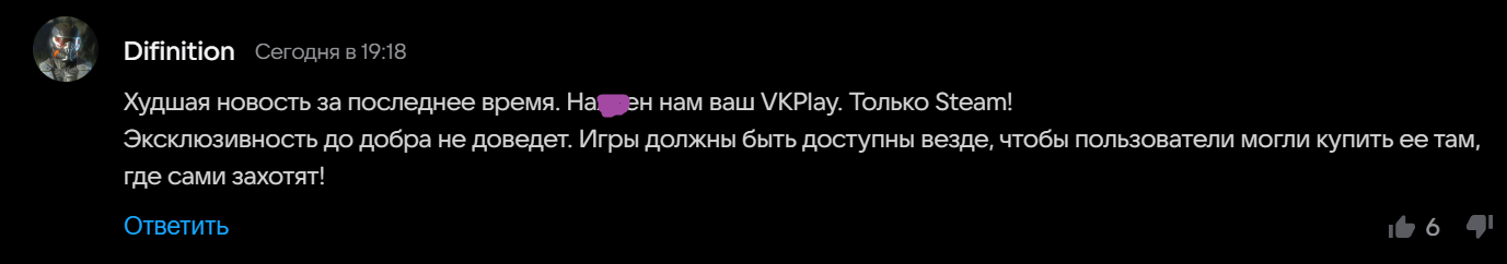 На текущий момент не совсем понятно, как будет реализована эксклюзивность VK Play: позволят ли предзаказавшим активировать ключ в Steam или предложат копию в VK Play.