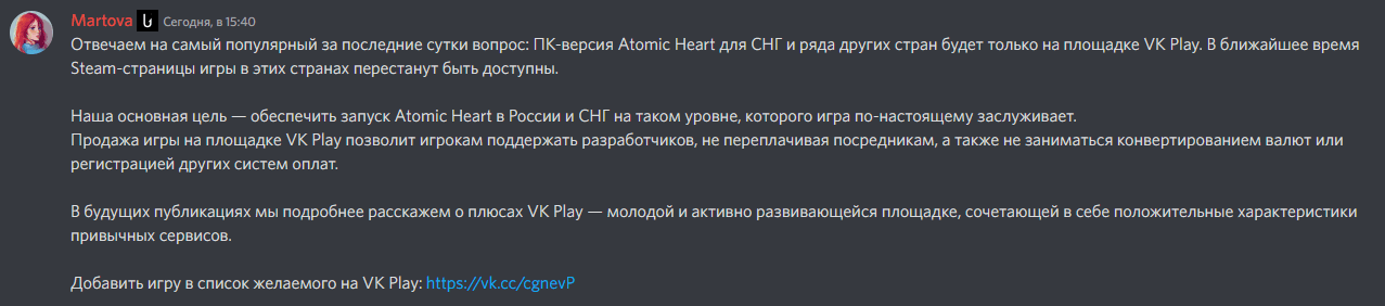 Недавно стало известно о том, что в России и некоторых странах СНГ Atomic Heart будет эксклюзивом VK Play. Реакция не заставила себя долго ждать.