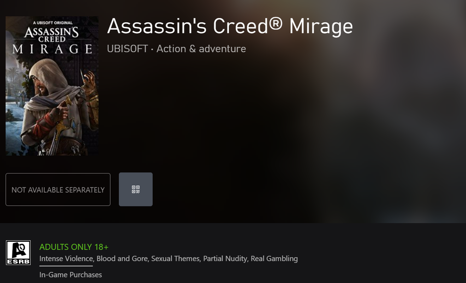 Страница Assassin's Creed Mirage появилась в Microsoft Store. Если на ней не установлены «заглушки», то в игре будет взрослый контент.