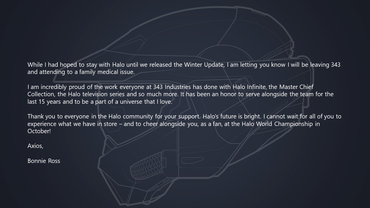 Формально уход связан не с состоянием франшизы Halo, в частности с Halo Infinite и не самыми выдающимися успехами в развитии данного проекта.