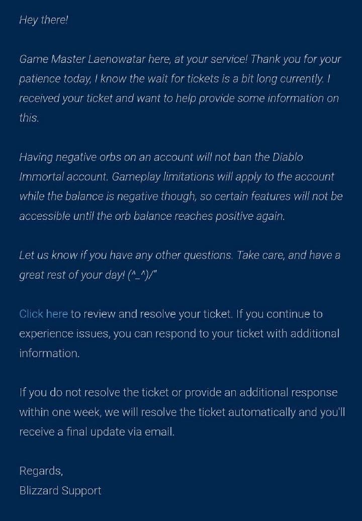 Blizzard заверила, что не будет банить аккаунты, владельцы которых незаконно покупали вечные сферы. Более того, такой человек может продолжать играть, но некоторые функции будут заблокированы до тех пор, пока долг не будет погашен.
