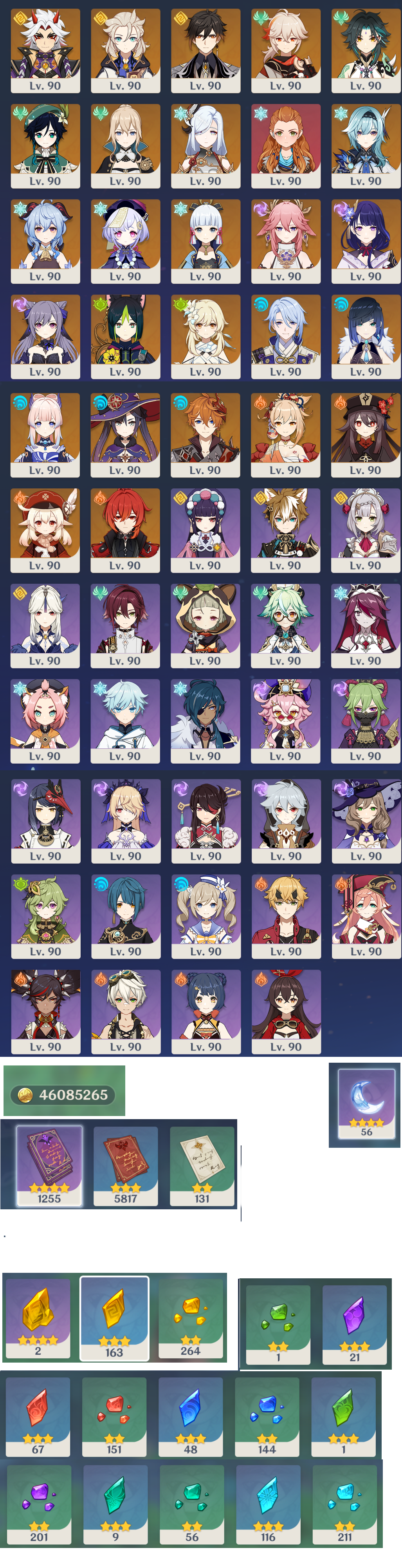 В Genshin Impact представлено множество разнообразных персонажей. Игрок решил прокачать всех и каждого