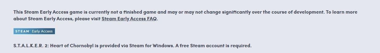 Не исключено, что GSC Game World намерена выпустить S.T.A.L.K.E.R. 2: Heart of Chernobyl недоделанной по программе раннего доступа. Официально разработчики об этом нигде не говорили, однако на это указывает описание шутера на странице магазина Humble Bundle.