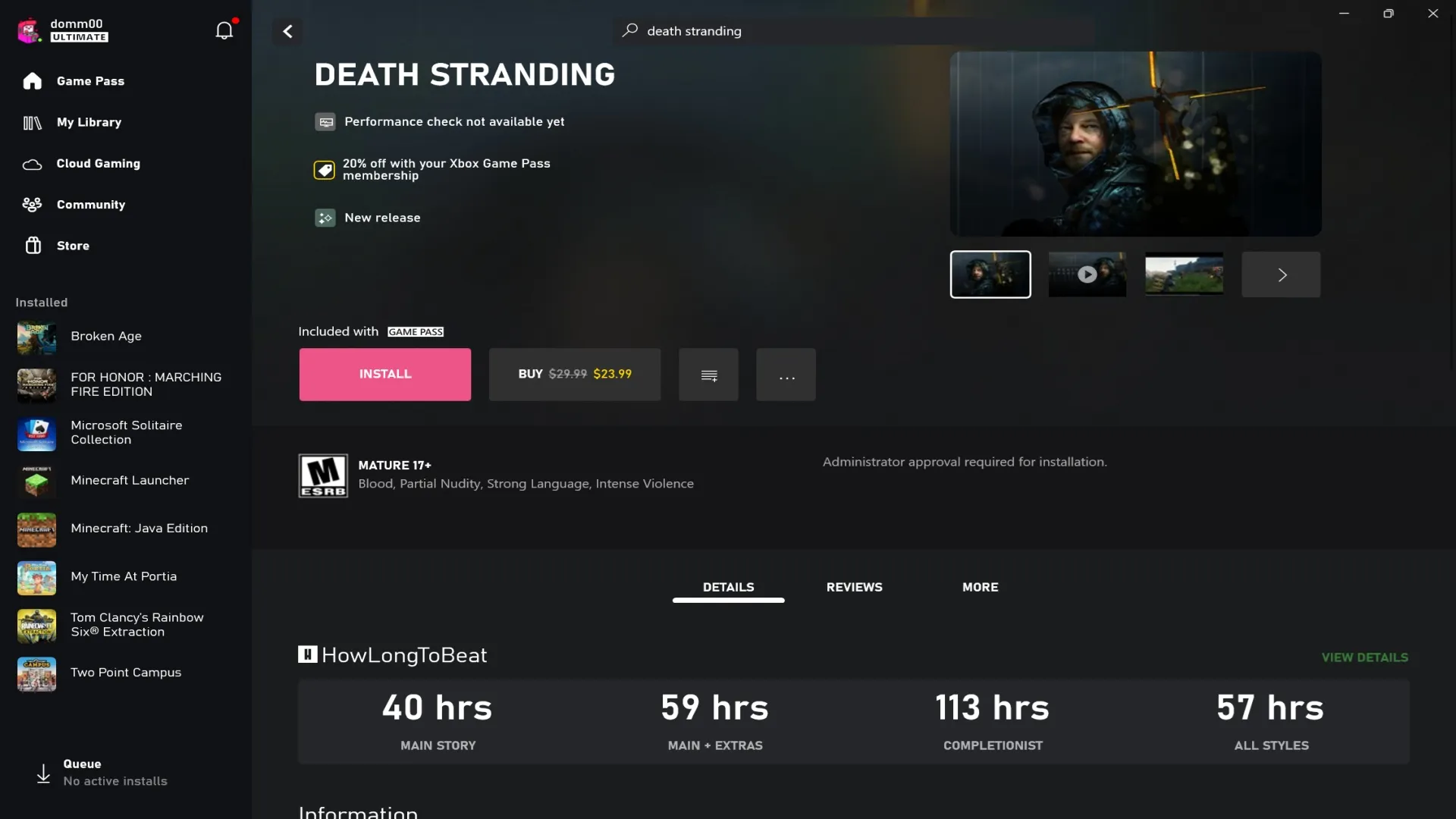 Microsoft представила обновление для ПК-приложения Xbox. Теперь можно будет легко узнать, сколько времени предстоит уделить игре при разных стилях прохождения.