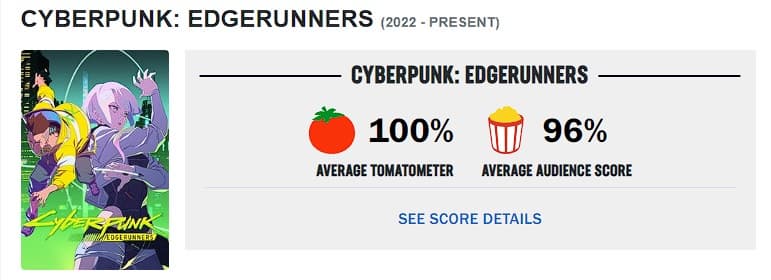 - «Cyberpunk: Edgerunners — это оригинальное аниме от Netflix, которое буквально кричит себе и стало одним из лучших продуктов, представленных сервисом стримингового вещания. Независимо от того, являетесь ли вы фанатом игр или нет, Edgerunners стоит вашего времени» - Эван Валентайн, ComicBook.com.