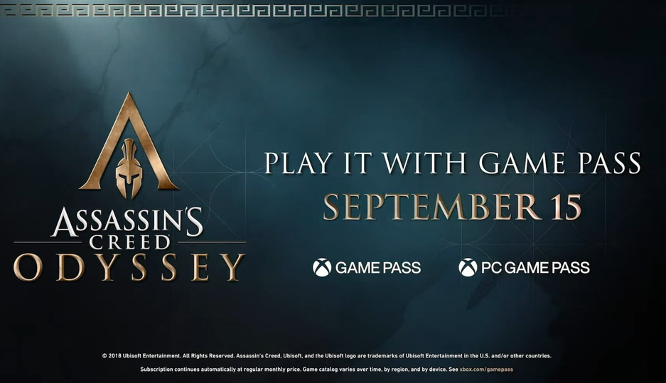Assassin's Creed Odyssey появится 15 сентября в библиотеке Xbox Game Pass и PC Game Pass.