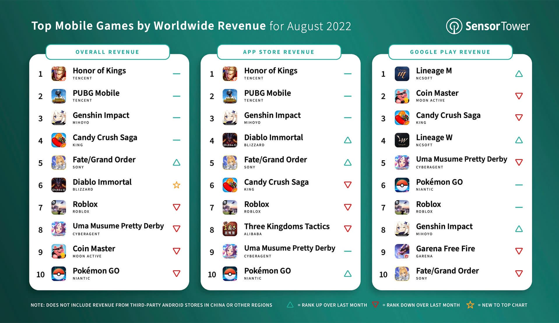 «Diablo Immortal от Blizzard заняла в прошлом месяце 6-е место среди мобильных игр по доходности в App Store и Google Play, получив около 97 миллионов долларов, что на 42% больше, чем месяцем ранее. Резкий рост расходов игроков последовал за запуском игры в Китае 25 июля, и эта страна быстро стала самым прибыльным рынком. В августе на Китай (только в App Store) пришлось почти 61% общемировых расходов игроков, в то время как на США пришлось более 16%».