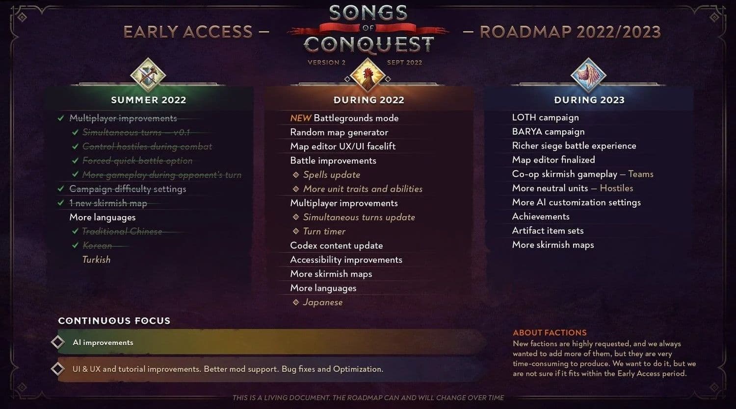 В 2022 году студия Lavapotion больше не будет выпускать кампаний в Songs of Conquest, а готовит новые карты сражений и новый игровой режим.