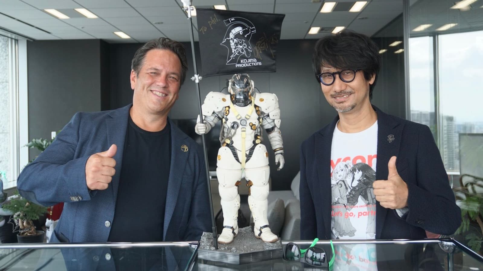 Президент Xbox Фил Спенсер встретился с создателем Metal Gear Solid и Death Stranding Хидео Кодзимой. Судя по улыбкам двух известных деятелей игровой индустрии, встреча была взаимовыгодной.
