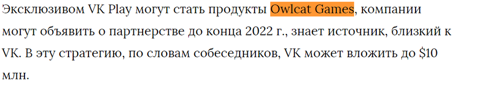 По слухам, до конца 2022 года Owlcat Games может объявить об эксклюзивности игр для VK Play.