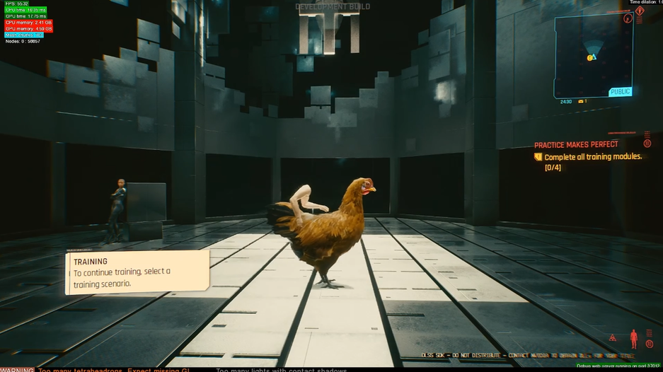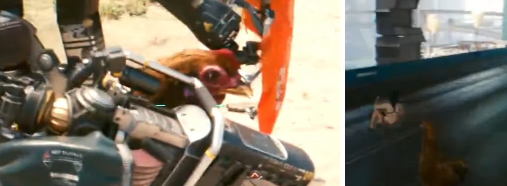 Вспомнили и забавные моменты. В какой-то момент в Cyberpunk 2077 добавили кур: персонажи и транспорт начали превращаться в птиц.