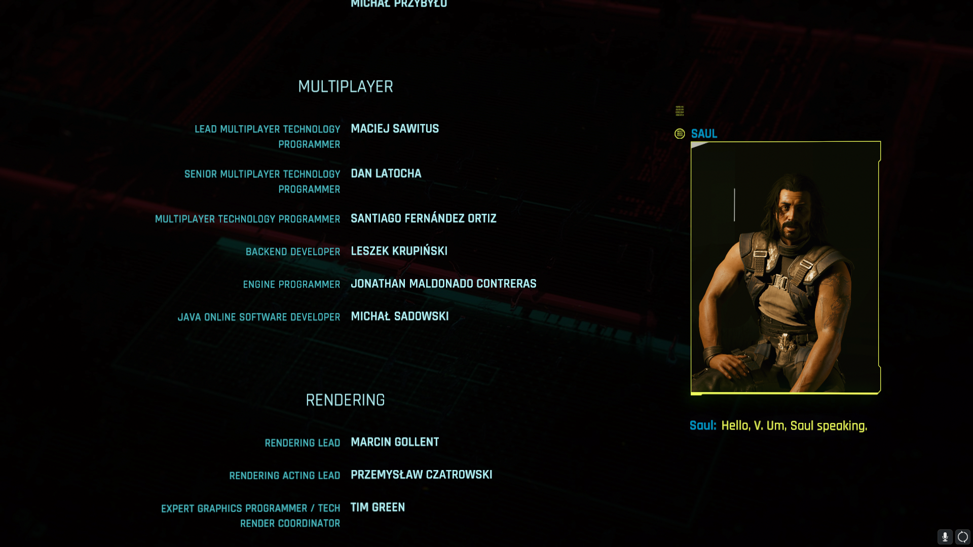 Rubz8r0 заметил, что в Cyberpunk 2077 по-прежнему можно увидеть раздел, посвящённый мультиплееру. CD Projekt RED перечислила в титрах имена и должности нескольких разработчиков.