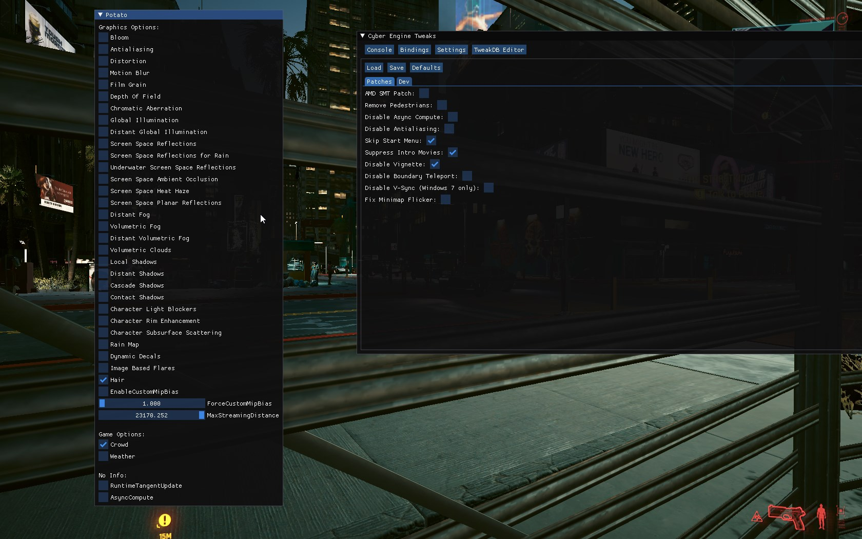 Разработчик под ником yakuzadeso представил модификацию Performance Boost For Potato PC для Cyberpunk 2077. Она позволяет упростить графику, чтобы с игрой мог справиться слабый ПК.