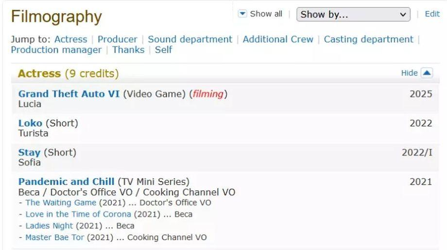 На IMDB заметили профиль актрисы Александры Кристины Эчаварри (Alexandra Cristina Echavarri). Есть мнение, что именно она задействована в работе над GTA 6. В профиле IMDB в качества даты выхода Grand Theft Auto 6 указали 2025 год.