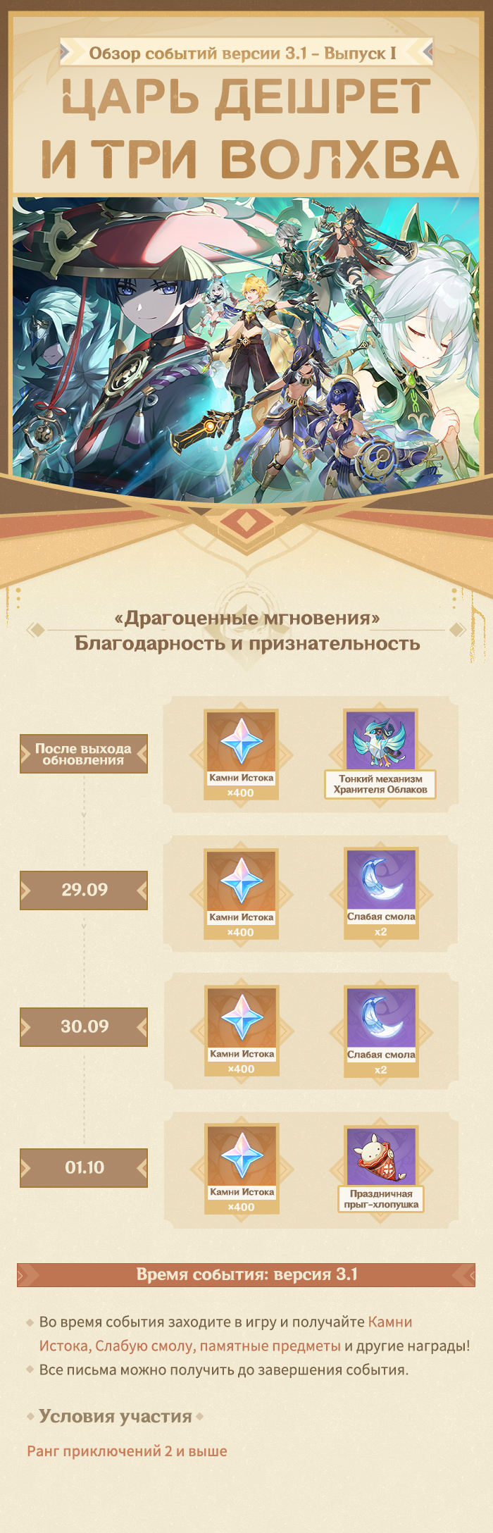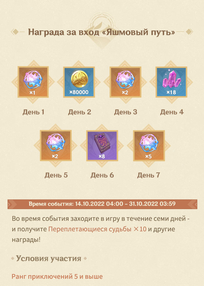 За постоянный вход в Genshin Impact тоже будут давать подарки, акция действует в период с 14 октября по 31 октября.