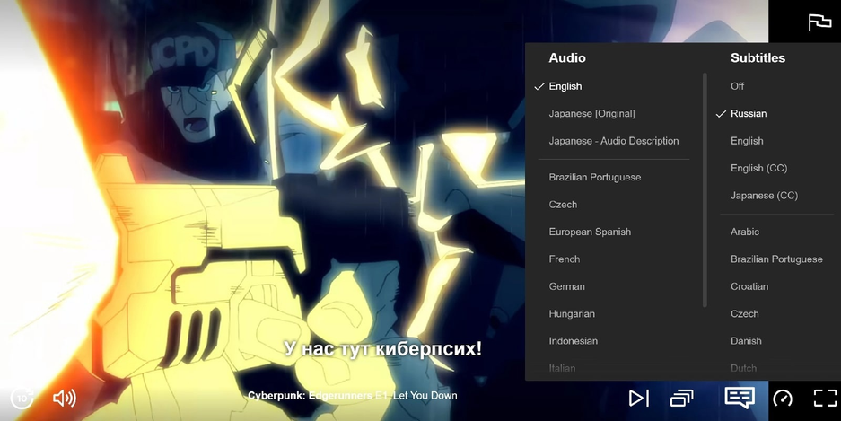 Прошла пара недель после премьеры аниме Cyberpunk Edgerunners. Пользователи заметили, что русские субтитры появились.
