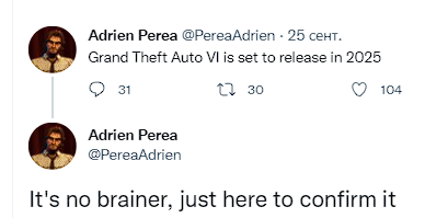 По его словам, GTA VI выйдет в 2025 году, и эта информация «не вызывает сомнений», а он просто выкладывает её для подтверждения.
