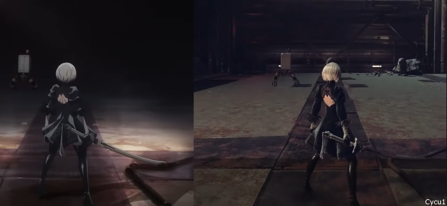 Автор YouTube-канала Cycu1 обратил внимание на недавние тизеры аниме NieR:Automata Ver1.1a. Он решил поискать похожие кадры в игре.