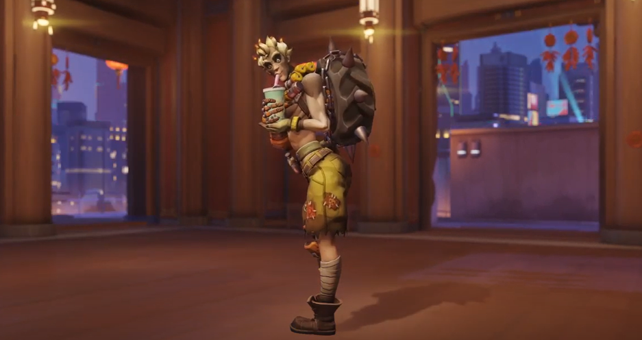 Эмоция Sipping для персонажа Junkrat (Крысавчик) очень сильно напоминает его победную позу, которая была представлена в оригинальной Overwatch.