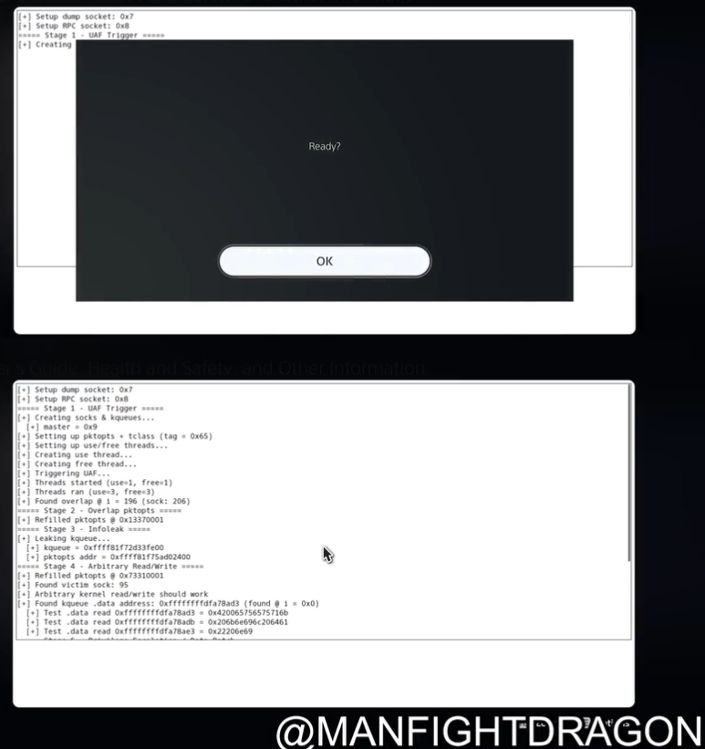 Текущая версия эксплойта срабатывает нестабильно, примерно в 30% случаев. При запуске может потребоваться несколько попыток. Эксплойт сейчас не позволяет выполнять на PS5 произвольный код.
