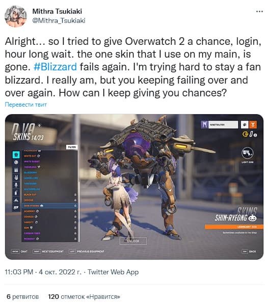 На официальном сайте компания говорит, что исправлений стоит ждать в ближайшее время. Речь об отключениях серверов, «косметике, предметах и валюте», которые у игроков Overwatch 1 не отображаются в коллекциях. Но пока нет информации о том, когда всё починят.