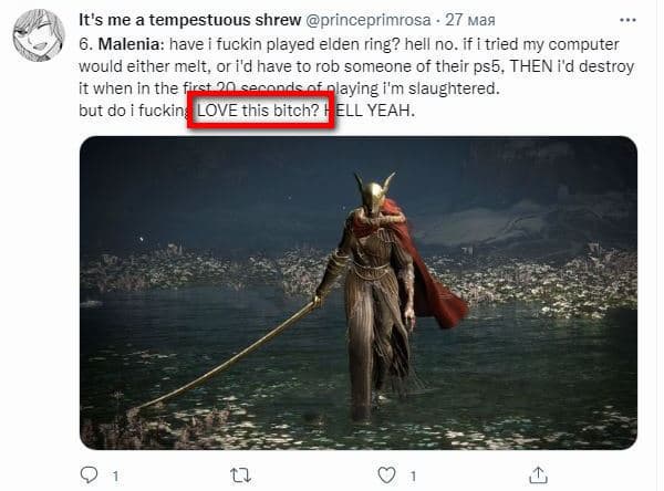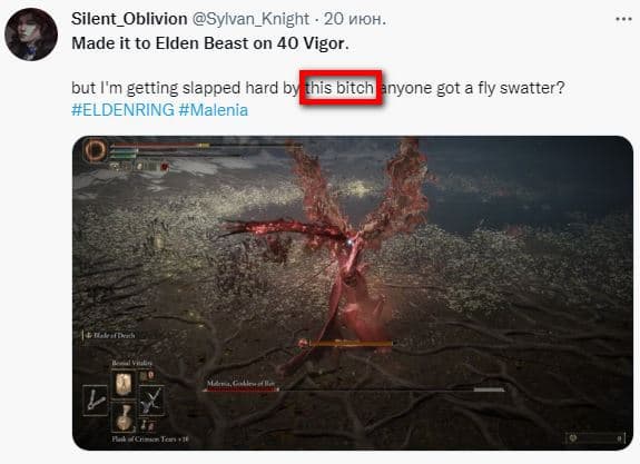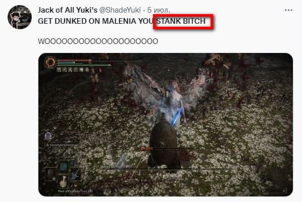 Журналистка Нико Дейо с портала Polygon утверждает, что в From Software работают женоненавистники. Свою позицию она объяснила тем, что студия сделала одного из самых сильных боссов в Elden Ring женщиной. Речь идет о Малении, клинке Микаэлы, которую многие игроки в злобе из-за поражений обзывают различными бранными и далеко не литературными словами.