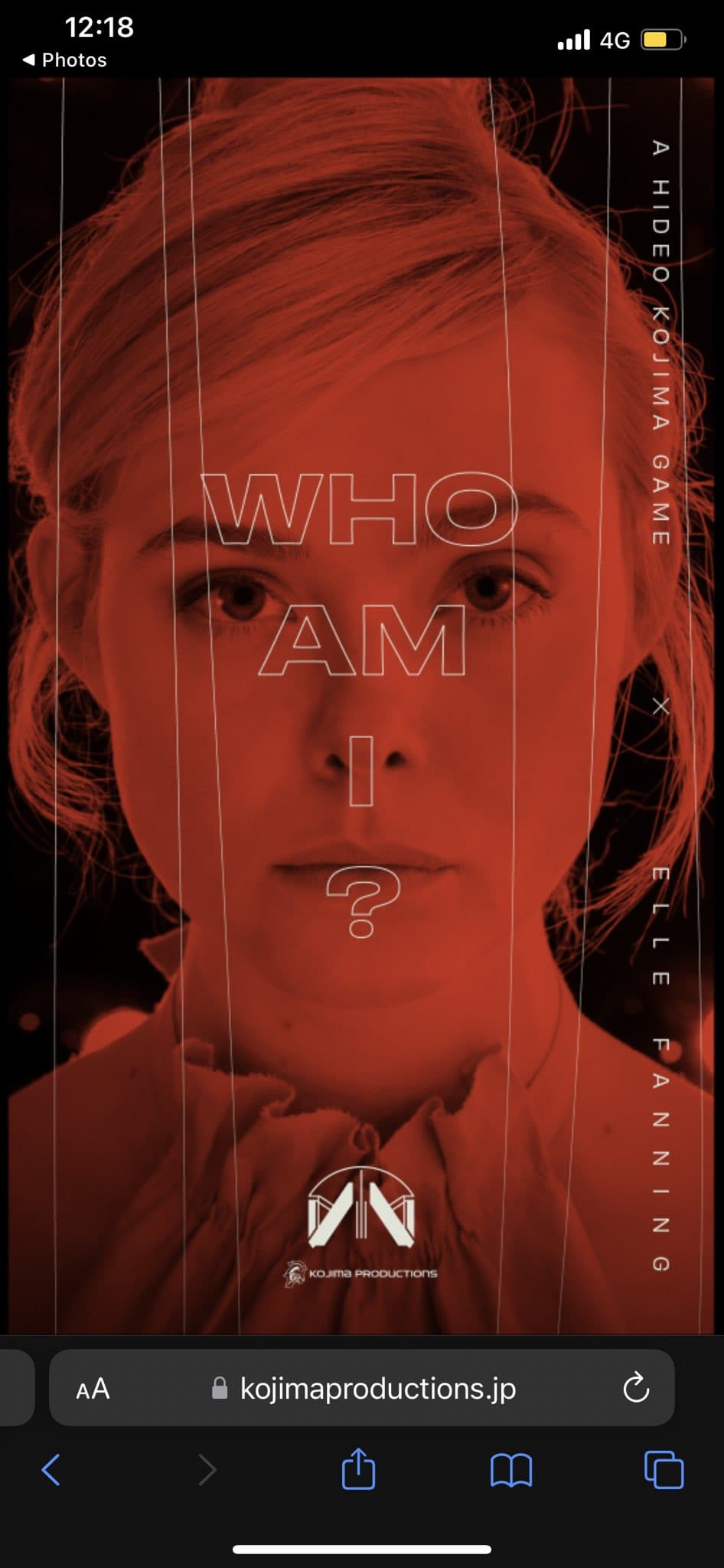 Информатор Лэнс Макдональд на мероприятии PAX Australia обнаружил вывеску с QR-кодом с вопросом «Где я?». После его сканирования открывается сайт Kojima Productions, на котором изображена женщина. И это Эль Фаннинг.