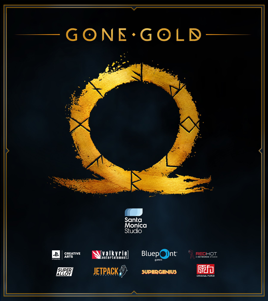 Объявление Santa Monica Studio дополнили артом с золотым значком игры God of War и логотипами студии SMS и не только.
