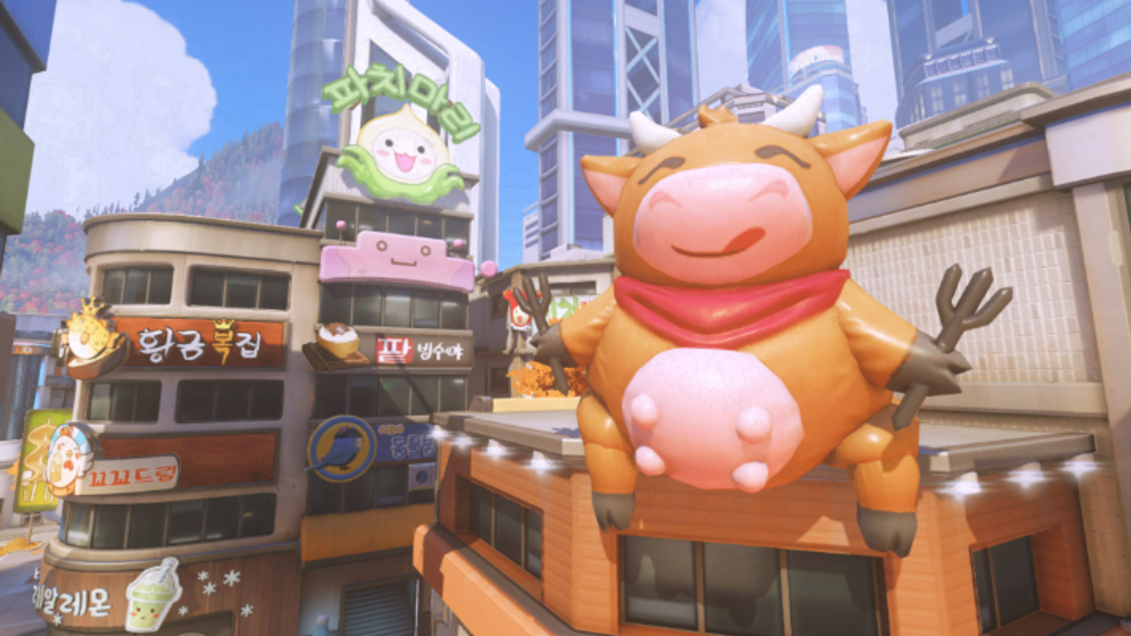 Теперь заметили, что в Overwatch 2 пострадала местная достопримечательность. На одной из карт в оригинальной Overwatch можно было повстречать улыбающуюся надувную корову.