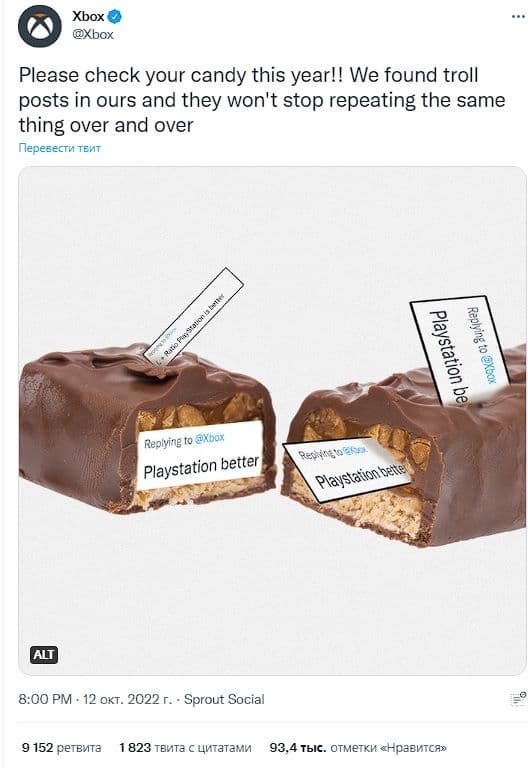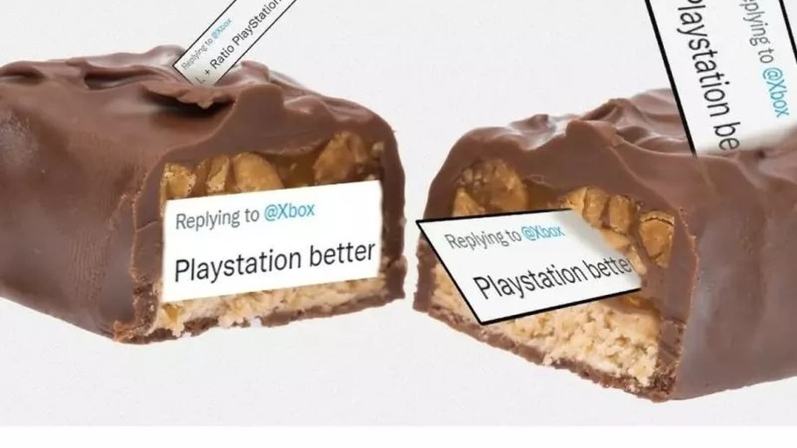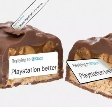 Xbox отреагировала на ситуацию интересным образом, проиллюстрировав два вкусных батончика, украшенных надписью «PlayStation Better».