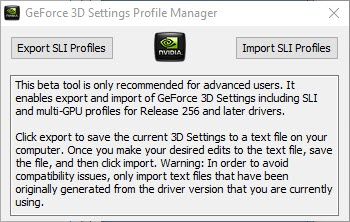 Потребуется программа NVIDIA GeForce 3D Profile Maganer. Необходимо открыть приложение и нажать кнопку «Export SLI Profiles», сохранить файл.