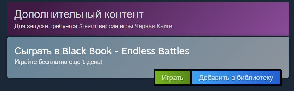 Чтобы добавить дополнение Endless Battles для Black Book в библиотеку Steam надо перейти по ссылке и нажать соответствующую кнопку «Добавить в библиотеку». Как сообщают, после этого DLC должно остаться в коллекции навсегда.