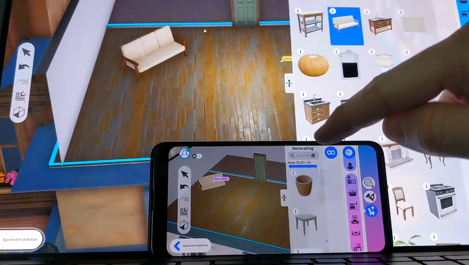Project Rene будет поддерживать одновременную игру на нескольких платформах. На презентации Maxis сравнили интерьер на смартфоне и ПК. После внесения изменений в одной версии, они практически моментально отобразились в другой.