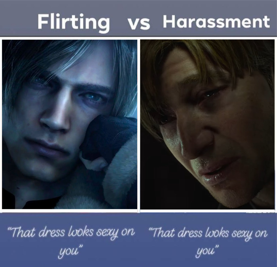 Впрочем, есть и альтернативное мнение. Леона (слева) считают пластиковой куклой, в то время как герой Silent Hill 2 выглядит как вполне реальный человек, который через многое прошёл.