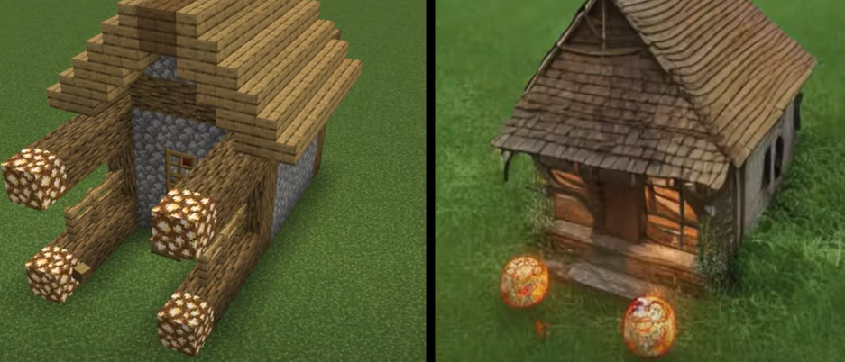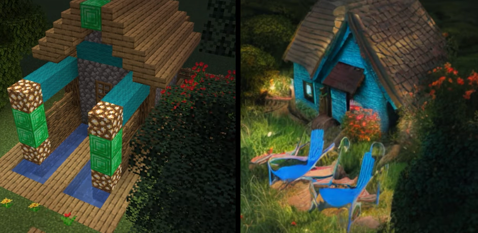 ThoseSixFaces удалось сделать строения из Minecraft более живыми. За доработку отвечала нейронная сеть Stable Diffusion.
